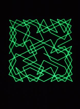 Ci-dessus, la polygraphie du cavalier 10×10, si on découpe les 100 carrés de façon à créer un puzzle, une néguentropie, c’est-à-dire en replaçant