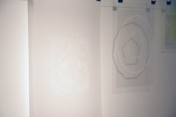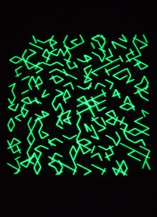 De nuit la magie de la phosphorescence du fil qui ne se voit que lorsque les lumières sont éteintes.