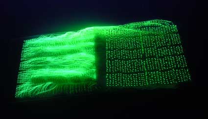 Faire la maquette du nombre 31. Placer le plateau de la polygraphie en bas et l’autre plateau en haut, rejoindre chaque nombre identique avec le fil fluorescent, toutes les lignes se croisent sauf le 31 qui est une ligne droite.