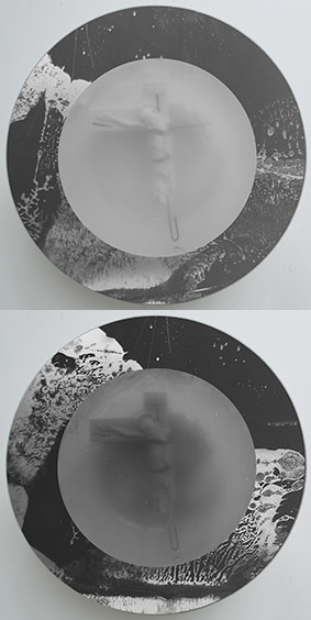 Les tenségrités sont des répartitions à l’équilibre de contraintes structurales, ce qui nécessite une tension commune pour que la géométrie tienne et résiste à sa forme, ci-dessous la structure passive-active de ma maquette en acier réalisée en 2006 se stabilise par les fils solidaires, conducteurs, alternatifs et tendus en laiton fin qui apportent une résistance formelle 11 au carré = 121 le palindrome aux 2 lectures possibles de gauche à droite et de droite à gauche de l’histoire